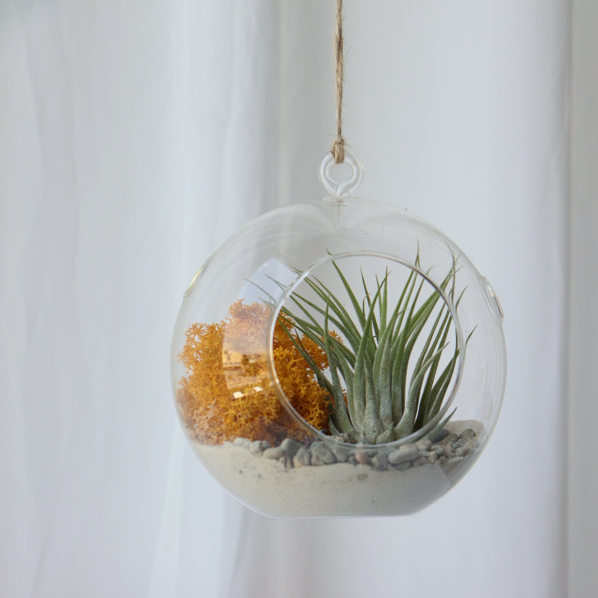 Terrario Aire vidrio soplado 10cm + planta ionantha + arena y liquen mostaza